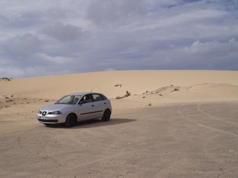 Seat Ibiza vor den Dünen(El Jable) bei Corralejo